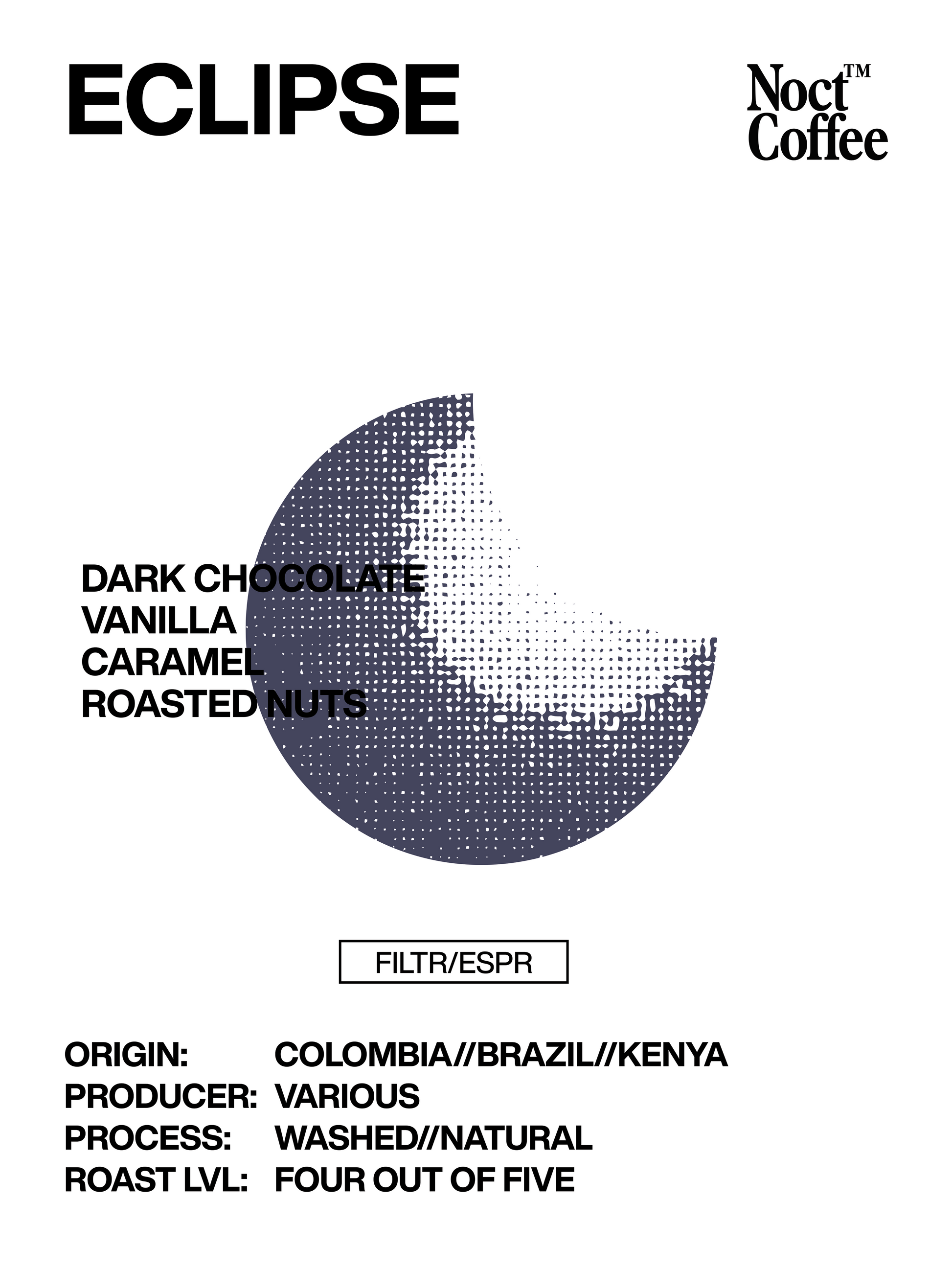 Eclipse is our take on a classic smooth operator. Just that easy going every morning warm delicious cup of coffee that is smooth on the palette and sweet no matter what method you brew it with.